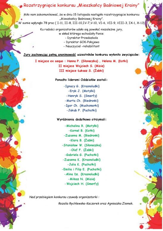 Rozstrzygnięcie konkursu „Mieszkańcy Baśniowej Krainy”